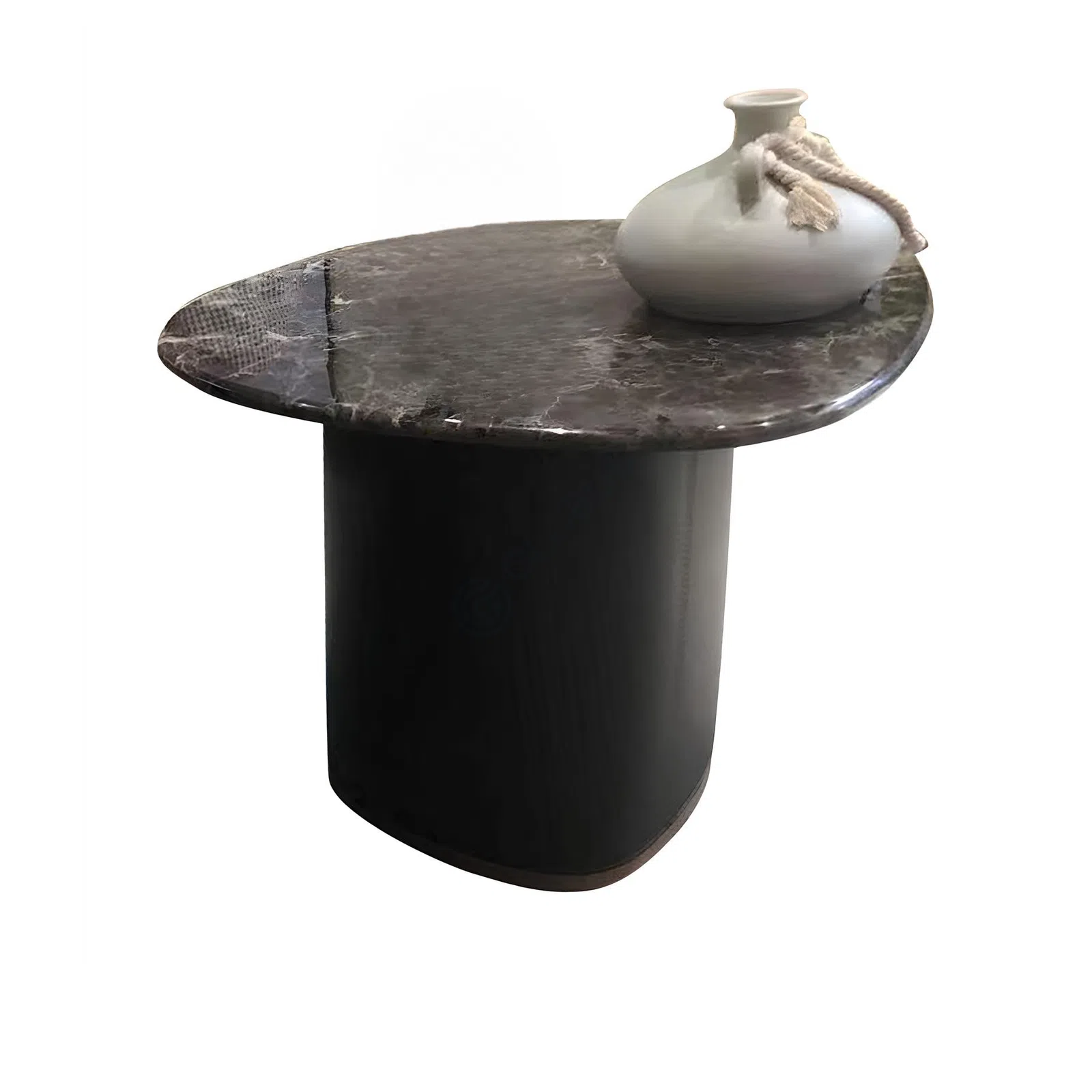 Журнальный столик, выполненный в современном стиле, сочетает в себе элегантность и функциональность. Его овальная столешница из натурального мрамора, с изысканной текстурой, добавляет изящество и подчеркивает утонченность пространства. Природный рисунок камня привносит в интерьер уникальность и натуральную гармонию.