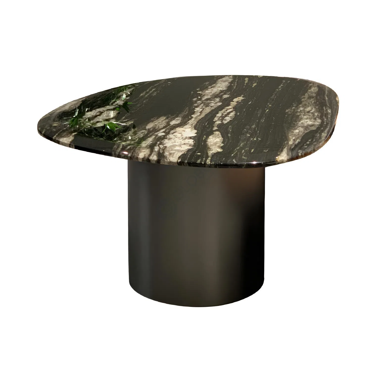 Основание из матовой нержавеющей стали отличается минималистичным силуэтом и гармонично дополняет благородную фактуру камня. Продуманная овальная форма создает ощущение легкости, не перегружая пространство и при этом подчеркивая статус интерьера.