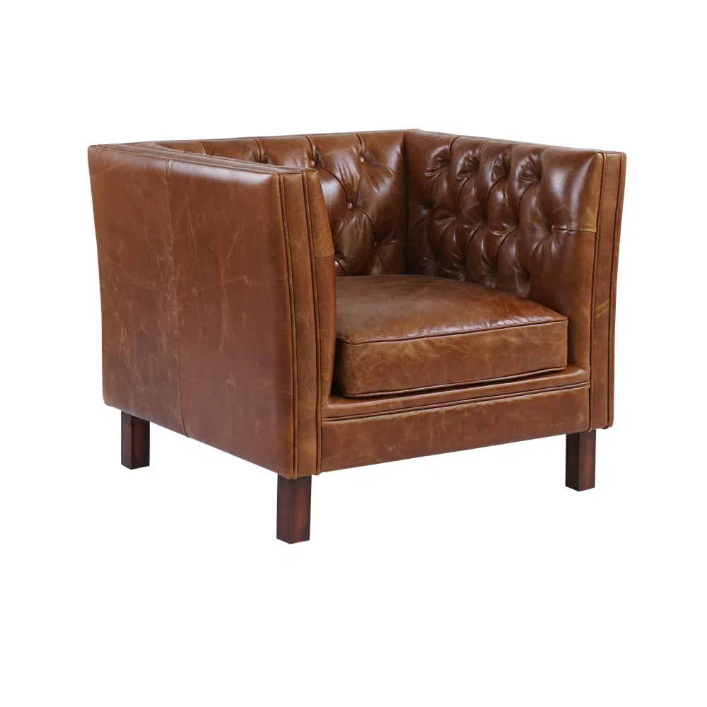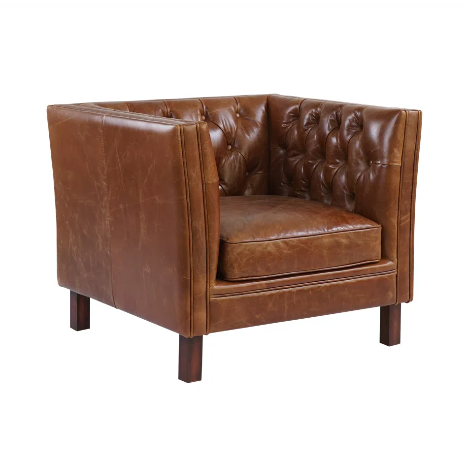 Диван сочетает в себе респектабельность американской классики и современный комфорт. Обивка из натуральной кожи обладает приятной текстурой и мягким блеском, подчеркивая изысканность модели. Глубокая стёжка придает спинке элегантный объем.