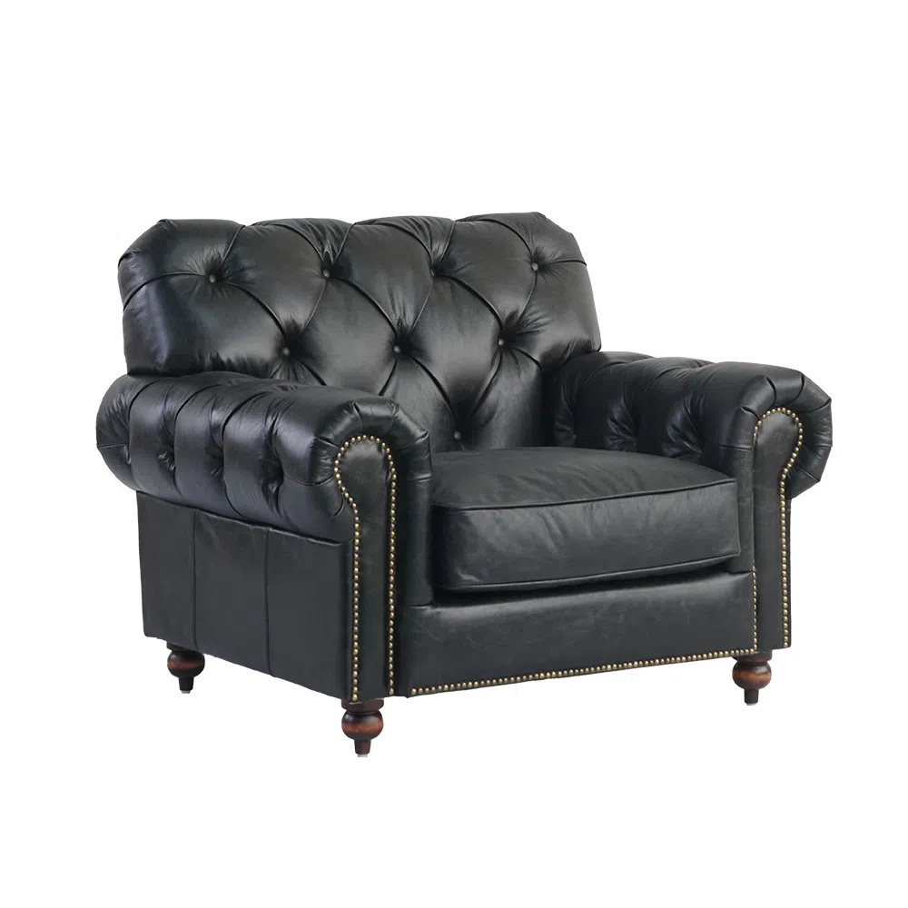 Диван, выполненный из натуральной кожи глубокого оливкового оттенка, сразу привлекает внимание элегантной стяжкой капитоне и выразительными формами. Широкая спинка и объемные подлокотники создают атмосферу уюта и расслабленности, а благородная текстура отделки подчеркивает аристократичность интерьера.