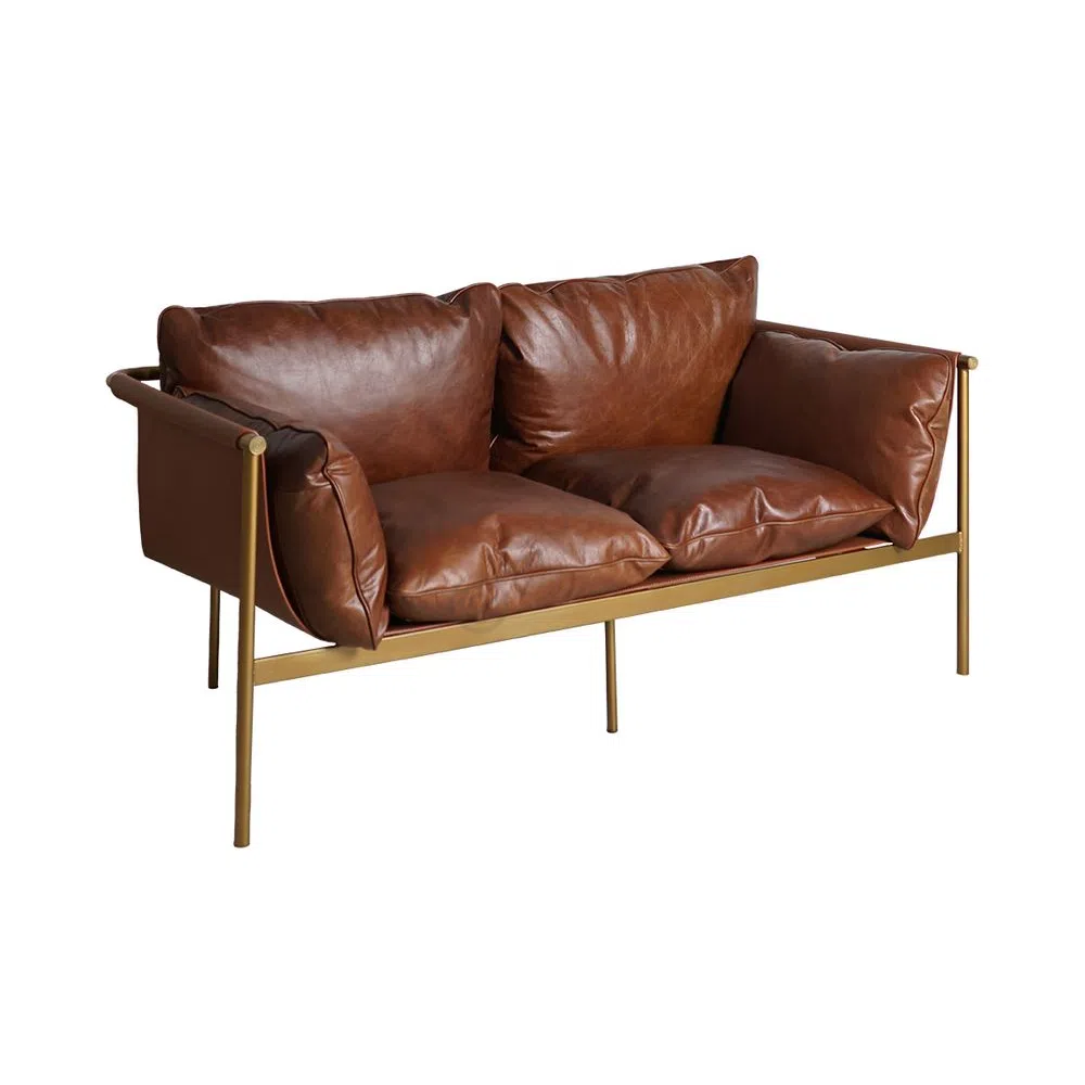 Кресло сочетает в себе выразительный современный дизайн и безупречное качество материалов. Натуральная кожа глубокого коньячного оттенка подчеркивает мягкость объемных подушек, создавая ощущение уюта и продуманного комфорта.