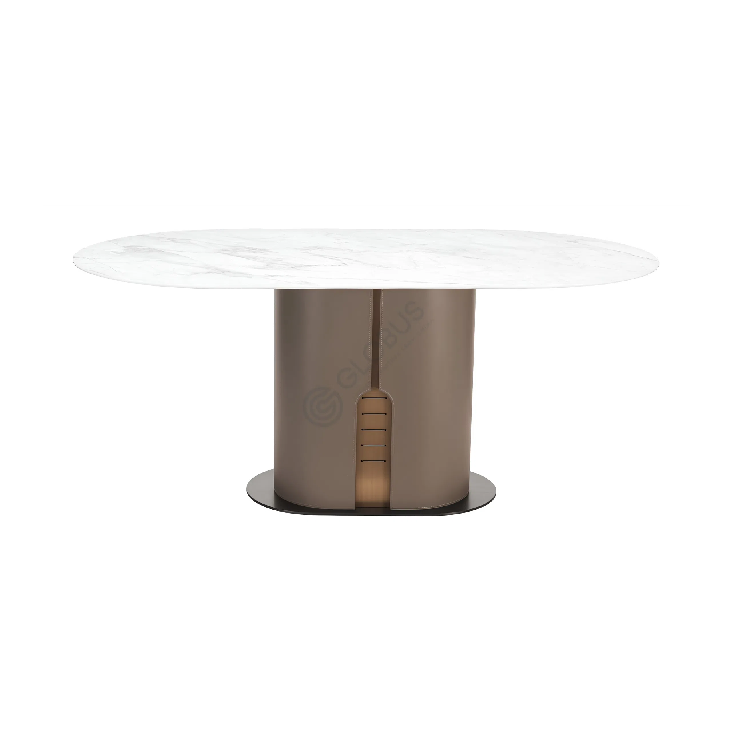 Фасады отделаны шорно-седельной кожей мягкого оттенка, что привносит ноты элегантности и тактильной насыщенности. Округлённые формы сглаживают строгие линии, делая её уместной как в просторной гостиной, так и в уютной спальне.