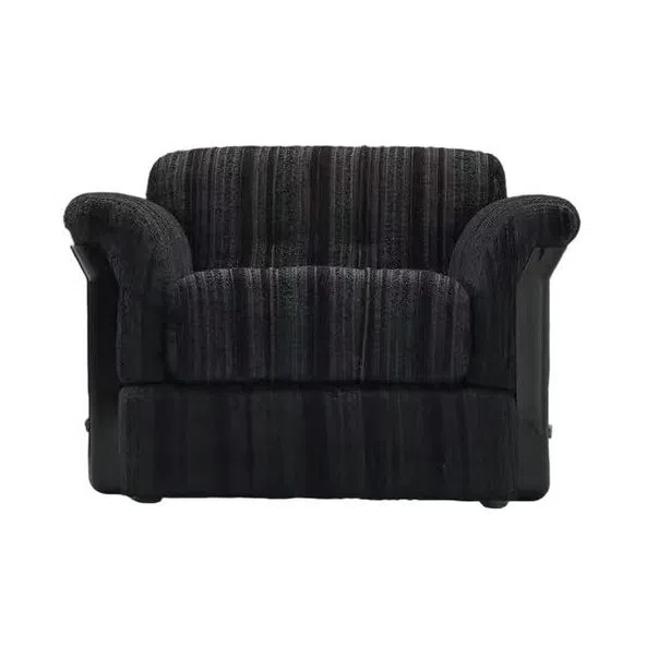 Обивка из высококачественного текстиля привлекает внимание своей сложной фактурой. Ритмичный узор из полос глубоких графитовых оттенков придает поверхности визуальную динамику и тактильную привлекательность. Мягкая, но упругая спинка с деликатной утяжкой и комфортные сиденья обеспечивают исключительное удобство.