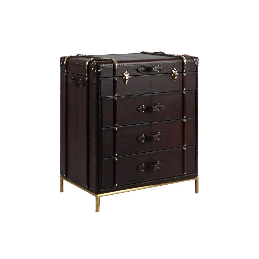 Изготовленный с исключительным вниманием к деталям, столик сочетает в себе изысканную кожу, прочное натуральное дерево и надежное железо. Глубокий, насыщенный оттенок кожи обволакивает основной корпус, приглашая прикоснуться к гладкой поверхности. Металлические уголки и декоративные клепки из железа не только обеспечивают прочность конструкции, но и придают изделию характерный винтажный шарм, напоминая о роскошных багажных кофрах прошлых эпох. Утонченные ножки из металла элегантно приподнимают столик, добавляя ему легкости.