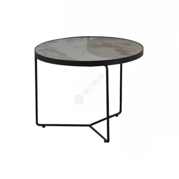 Элегантная опора создана из высококачественного металла, образующего минималистичную и одновременно прочную конструкцию. Тонкие, но устойчивые ножки переплетаются в гармоничный геометрический узор, который словно парит под керамической плитой. Черный матовый оттенок металлического каркаса безупречно подчеркивает текстуру столешницы, создавая визуальный контраст.