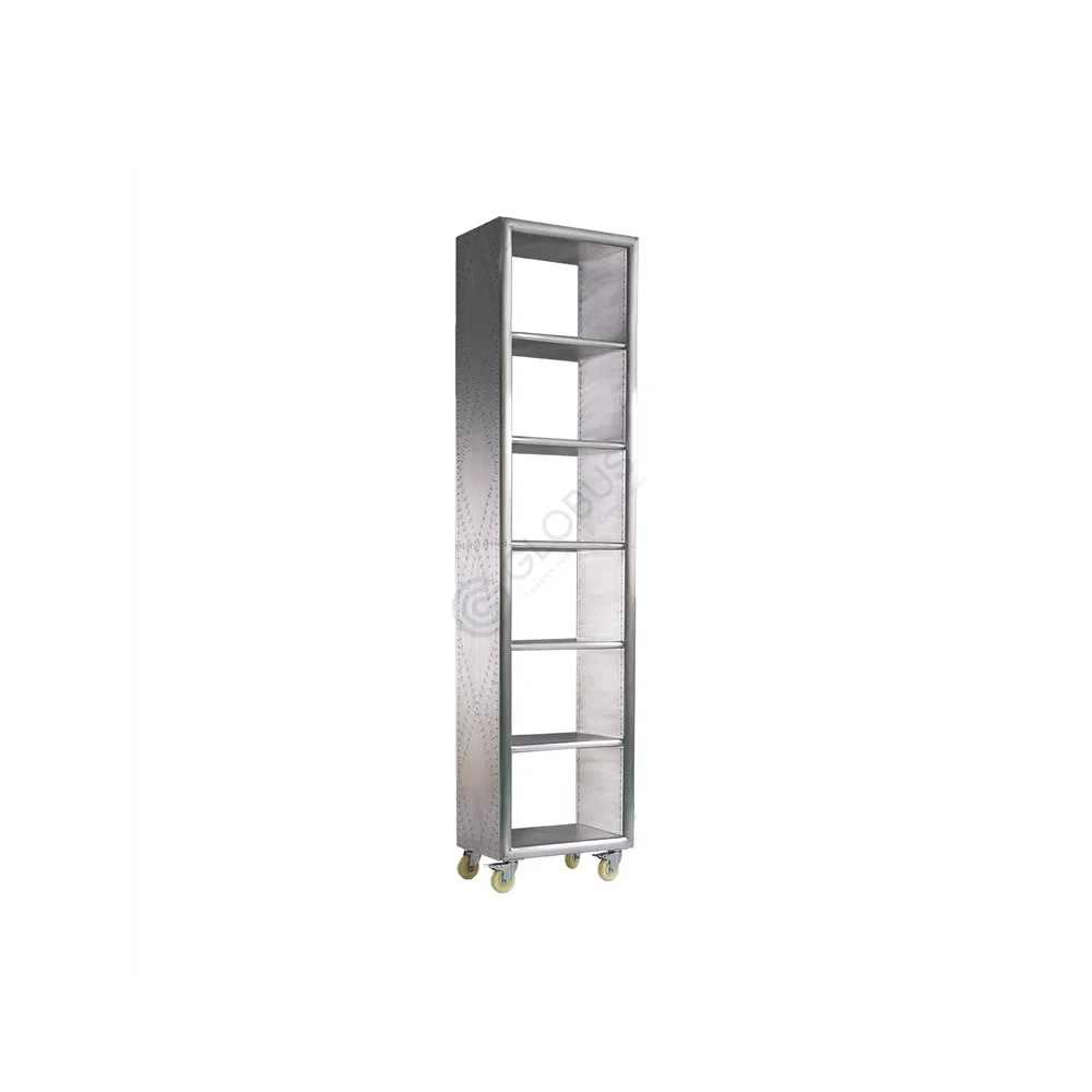 Этот стеллаж воплощает в себе квинтэссенцию стиля лофт, предлагая элегантное и функциональное решение для современного интерьера. Изготовленный из высококачественного алюминия, он привлекает внимание своей прочной и лаконичной конструкцией. Отделка с видимыми заклепками на боковых панелях придает ему аутентичный индустриальный шарм, напоминающий об эстетике авиационного дизайна. Металлическая поверхность отражает свет, добавляя пространству глубины и визуальной легкости.