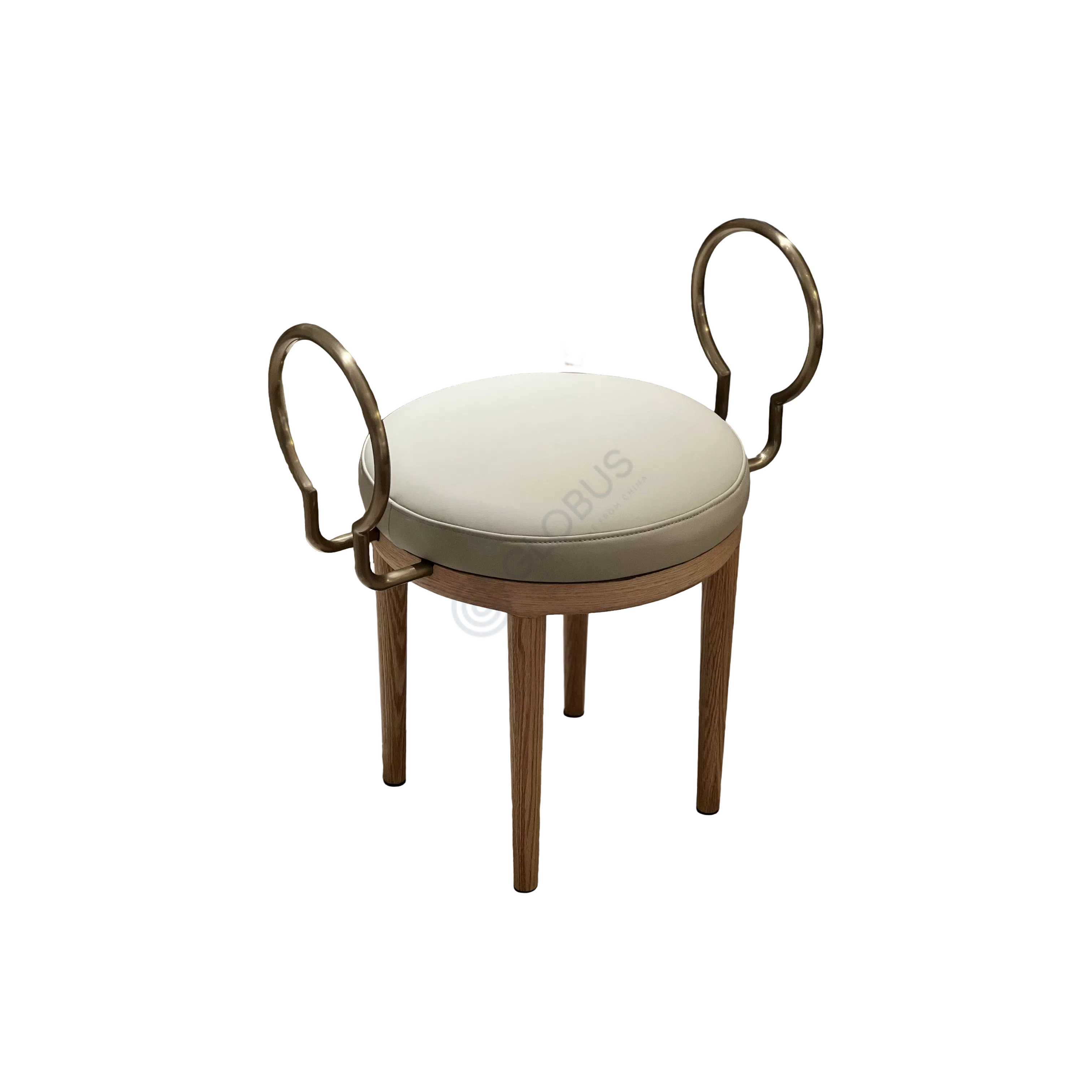 Четыре стройные, конические ножки завершают общую гармонию предмета. Их двухцветное исполнение, где темный верх контрастирует с натуральным деревом, привносит в облик легкость и визуальную игру, подчеркивая динамичный силуэт этого мебельного элемента.