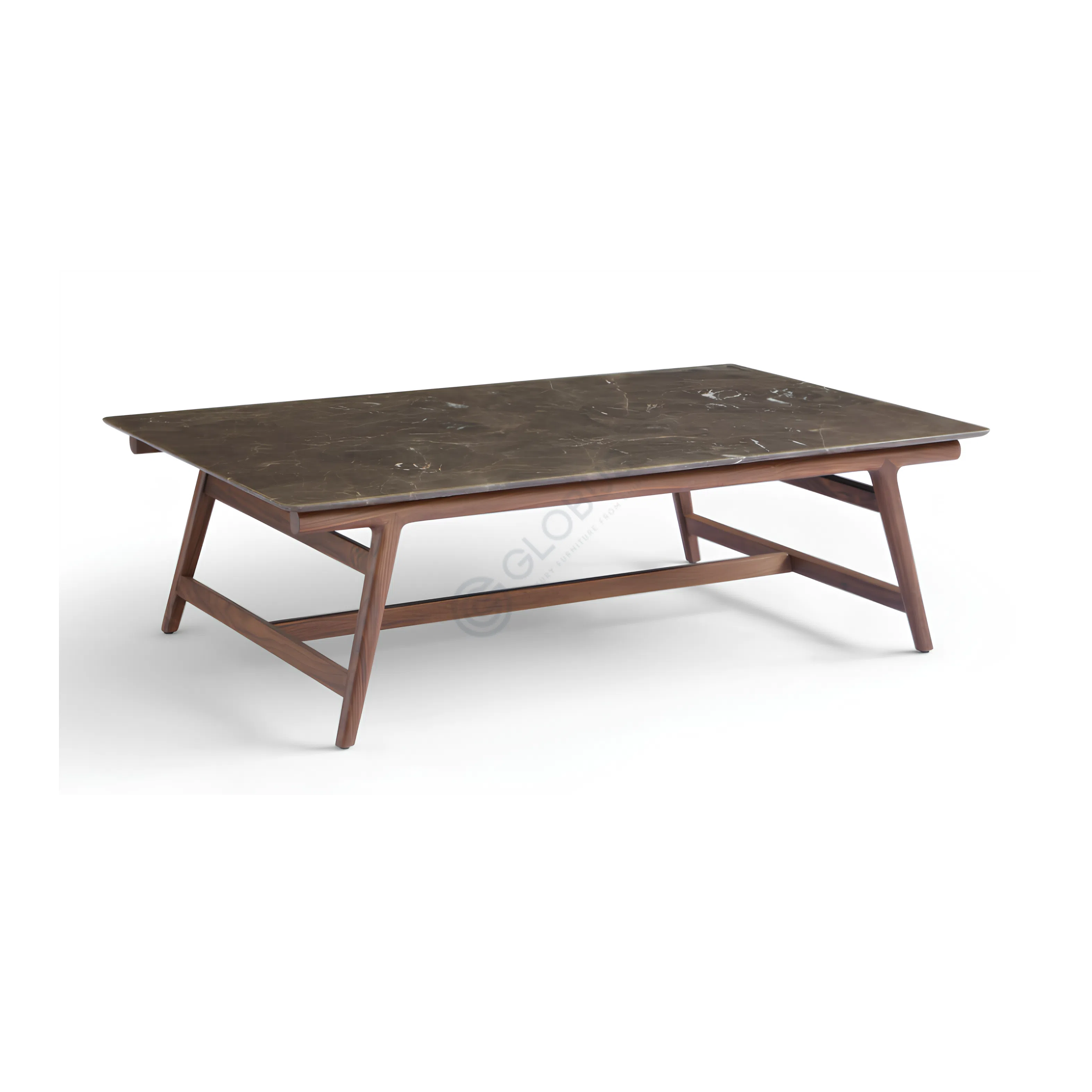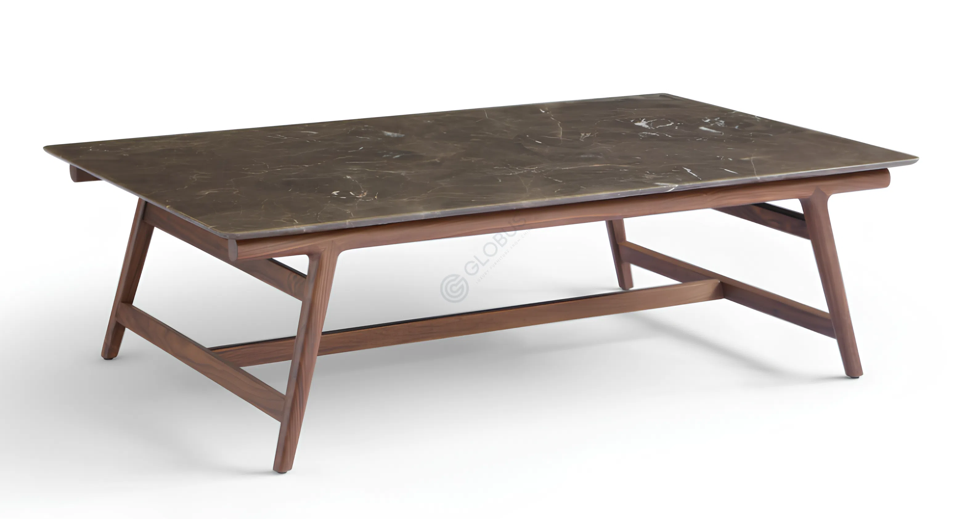 Устойчивый каркас изготовлен из тёмного дерева, обработанного матовым лаком для подчёркивания природного рисунка. Специальная конструкция ножек с лёгким наклоном создаёт визуальный баланс и обеспечивает надёжную опору.