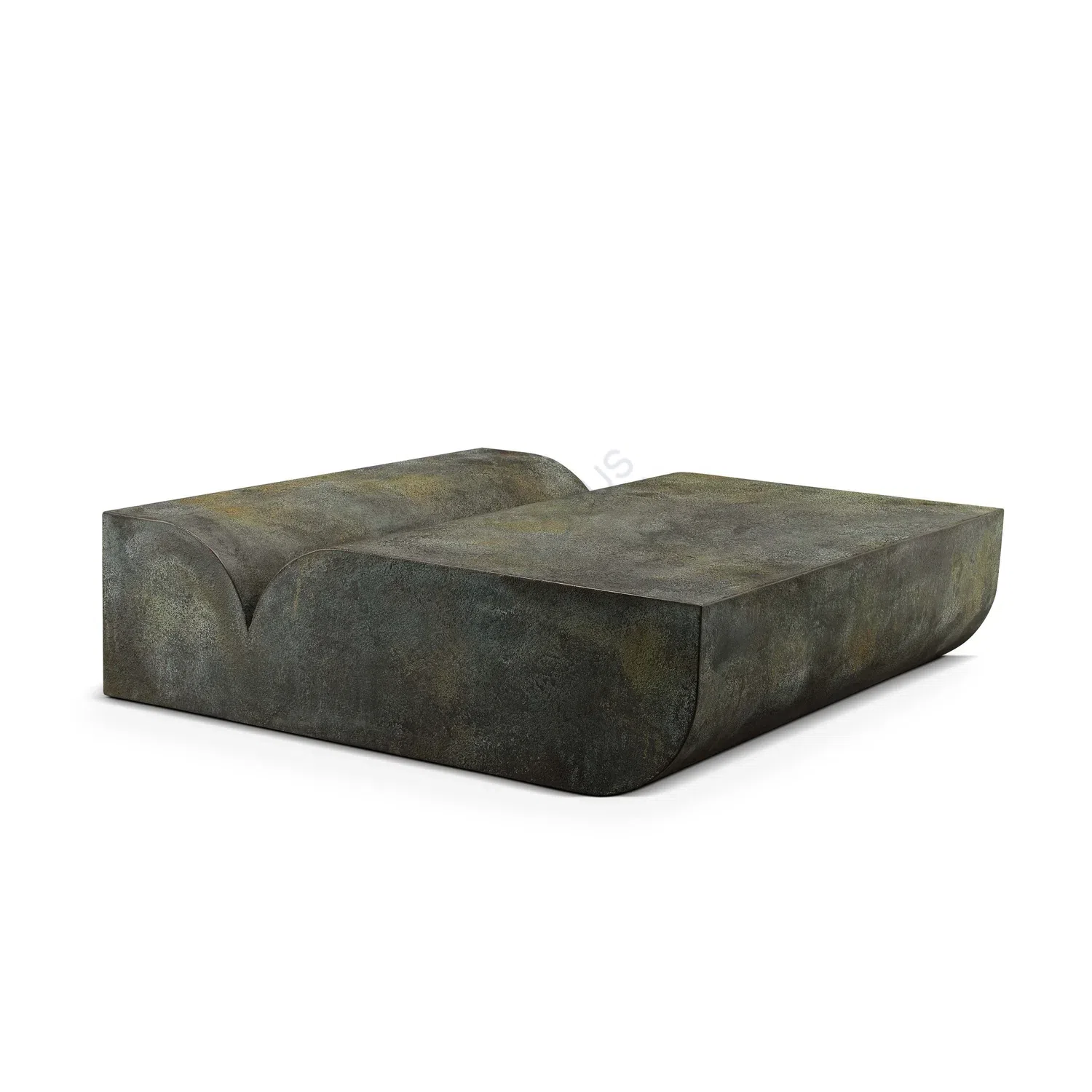 Литая основа выполнена из эпоксидной смолы и покрыта насыщенной фактурой с оттенками графита и бронзы. Материал дает плотную, непористую поверхность, на которой мягко играет свет, а закругленные радиусы аккуратно переходят в четкие ребра.