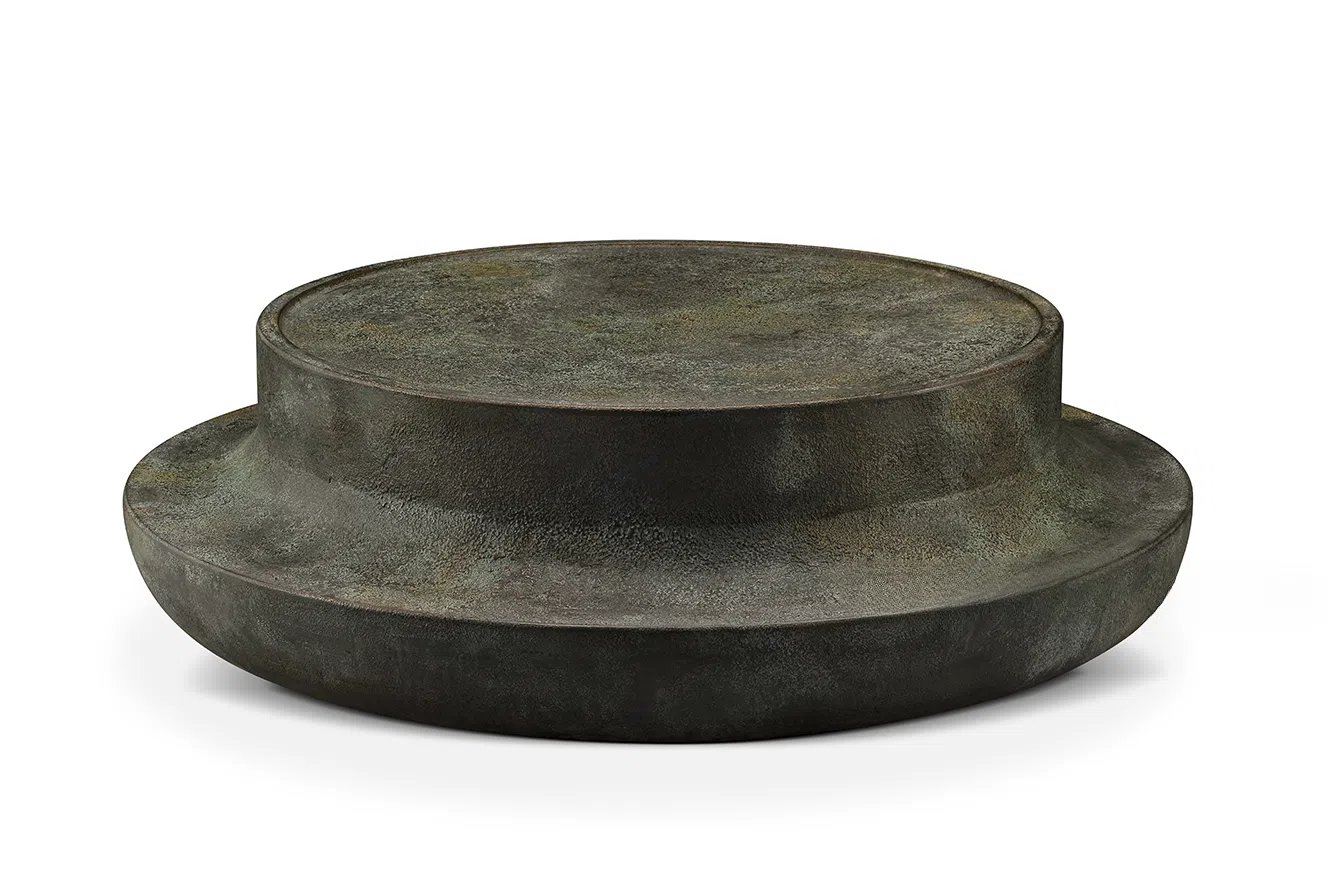 Скамья с монолитным силуэтом и мягко скругленными линиями создает спокойный акцент в современном интерьере. Глубокий серо-зеленый оттенок с нюансами патины подчеркивает объем и придает предмету благородный, минеральный характер.