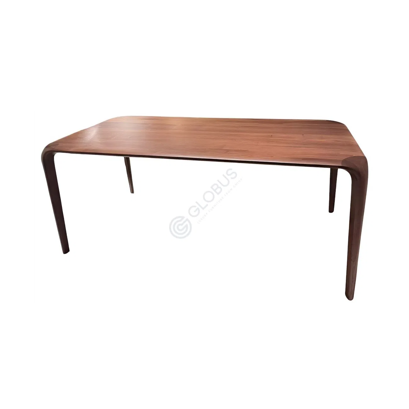 Обеденный стол из натурального дерева с плавно скругленными углами и тонким профилем. Чистая современная геометрия сочетается с природной теплотой, а столешница мягко переходит в опоры, образуя цельный и легкий силуэт, близкий экостилю.
