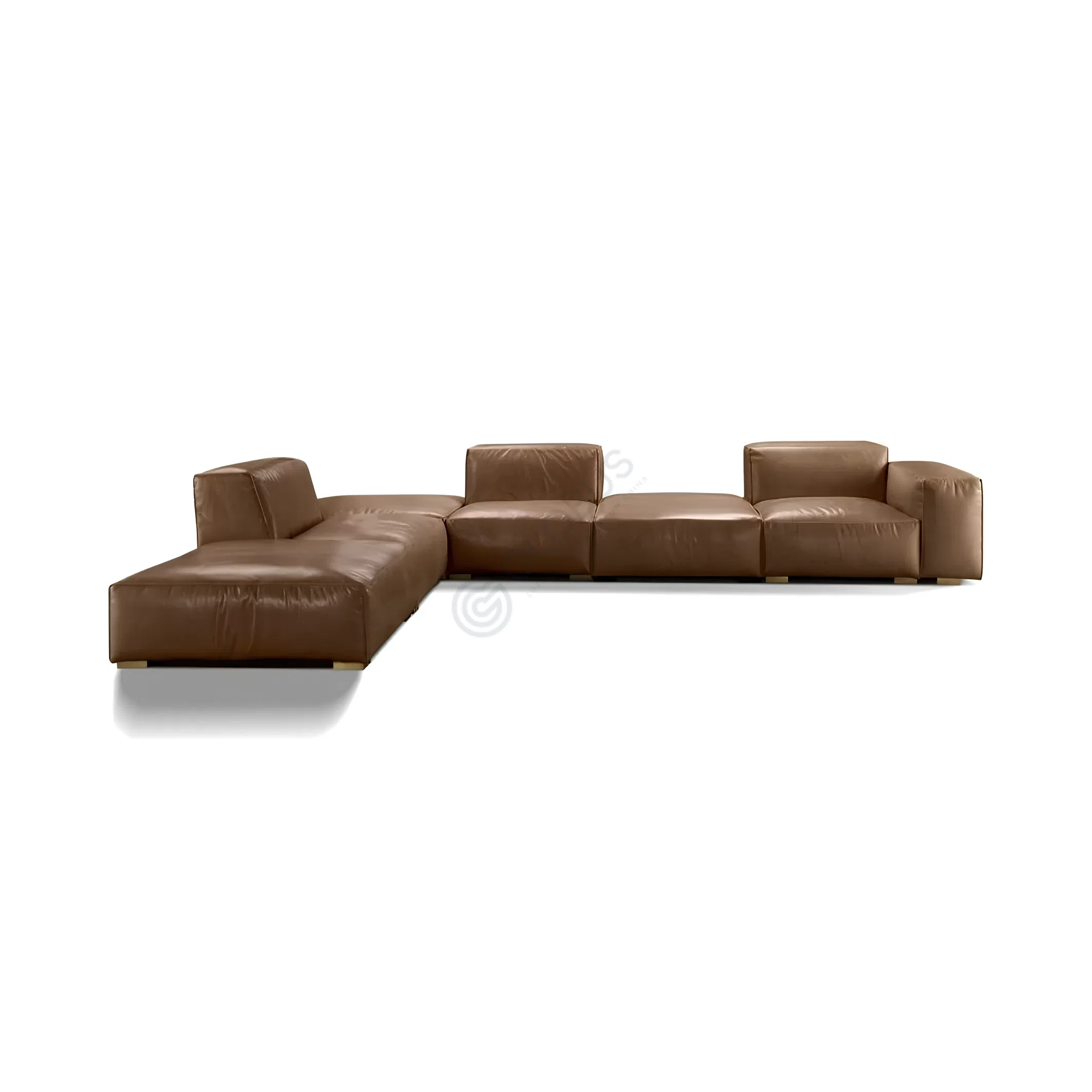 Обивка из вощёной кожи отличается бархатистым блеском и благородной текстурой, приятно реагирует на прикосновения и со временем приобретает характерную патину. Каркас выполнен из натурального дерева и фанеры, а скрытые элементы из нержавеющей стали добавляют конструкции стабильность и долговечность.