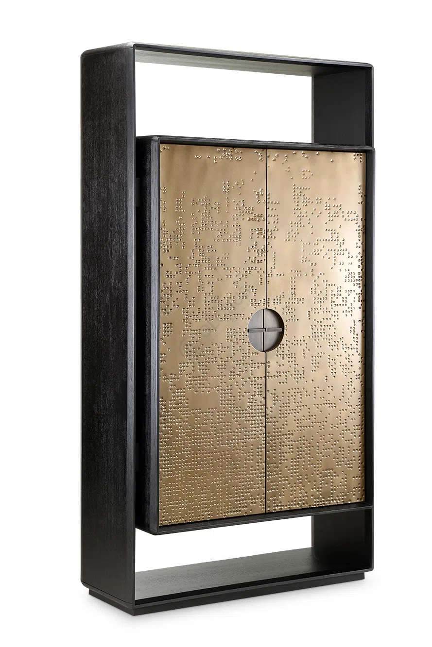 Его основание выполнено из массива натурального дерева, обработанного с особым вниманием к текстуре и цвету. Изящные изгибы ножек формируют уникальный силуэт, придающий изделию выразительность. Круглая столешница, отличающаяся своей элегантностью, гармонично венчает композицию. В её центре расположен вращающийся элемент, выполненный в том же благородном металлическом оттенке, что и акцентные детали основания.