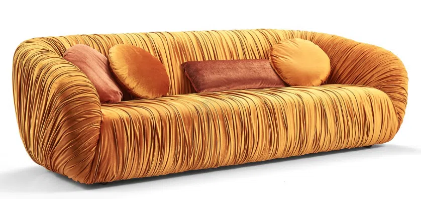 Этот элегантный пуф является воплощением современного стиля и утонченного комфорта. Его облик привлекает внимание благодаря уникальной текстильной обивке, мастерски драпированной в изящные вертикальные складки, которые создают эффект легкой воздушности и визуальной мягкости.