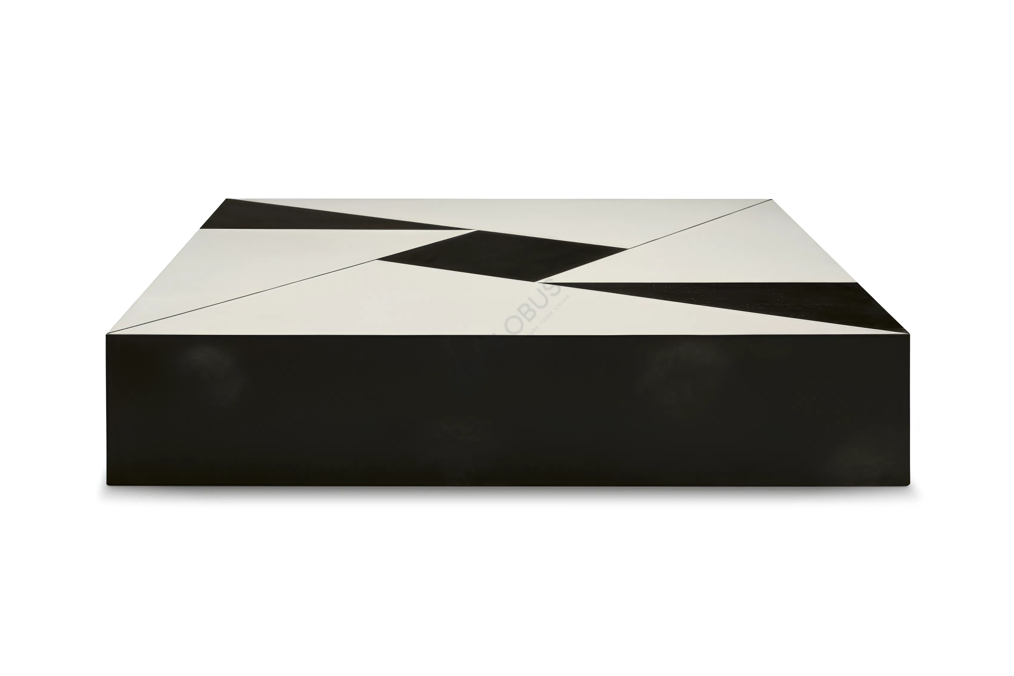 Этот угловой столик представляет собой воплощение современного дизайна, где функциональность встречается с высоким искусством. Его кубическая форма украшена динамичным геометрическим рисунком, создающим завораживающую игру света и тени.