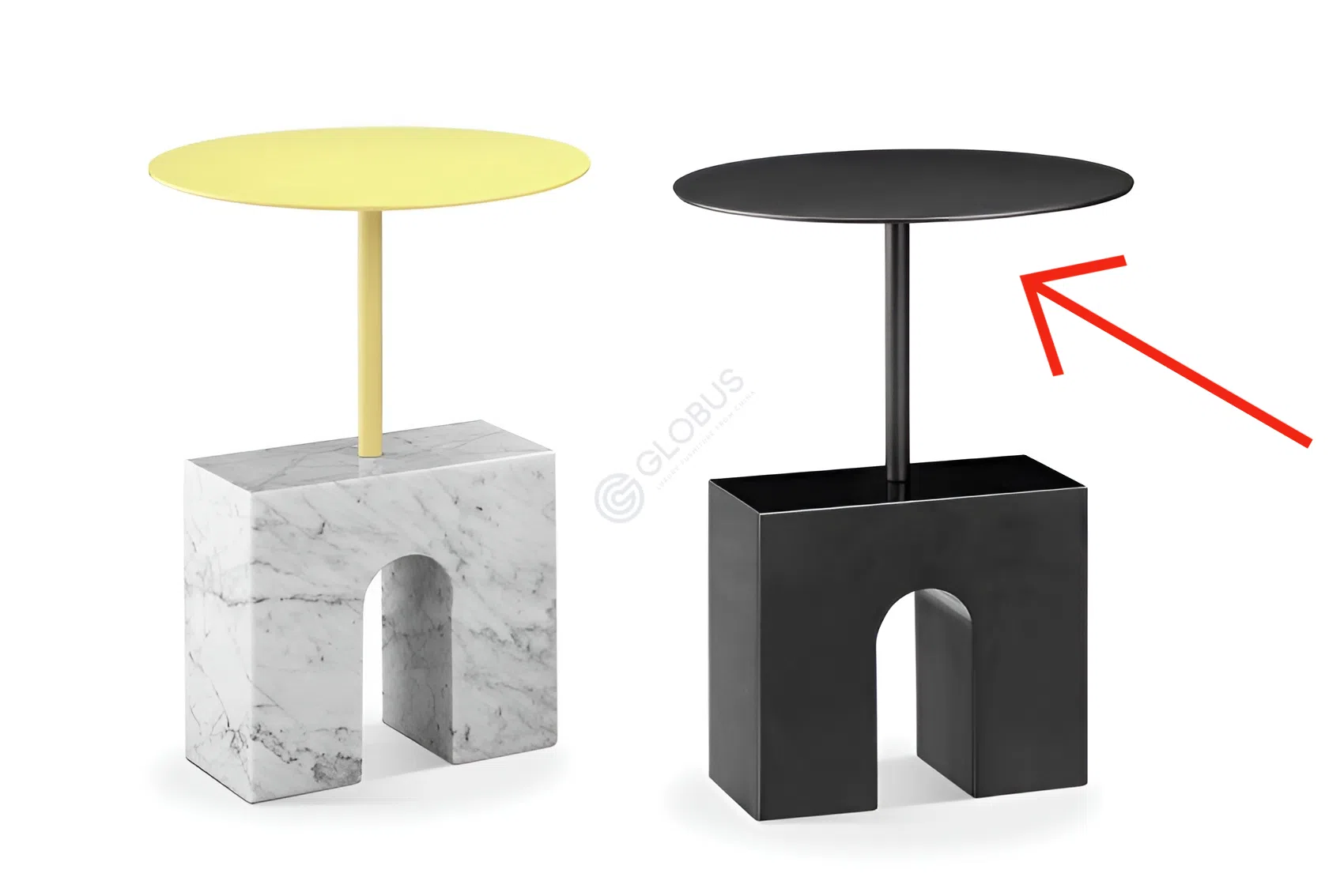 Основание предмета сформировано из трех опор натурального мрамора, каждая из которых обладает неповторимым рисунком прожилок. Изящные арочные проемы, искусно вырезанные в камне, придают этой монументальной фактуре неожиданную грацию и архитектурную выразительность, создавая динамичную игру света и тени.