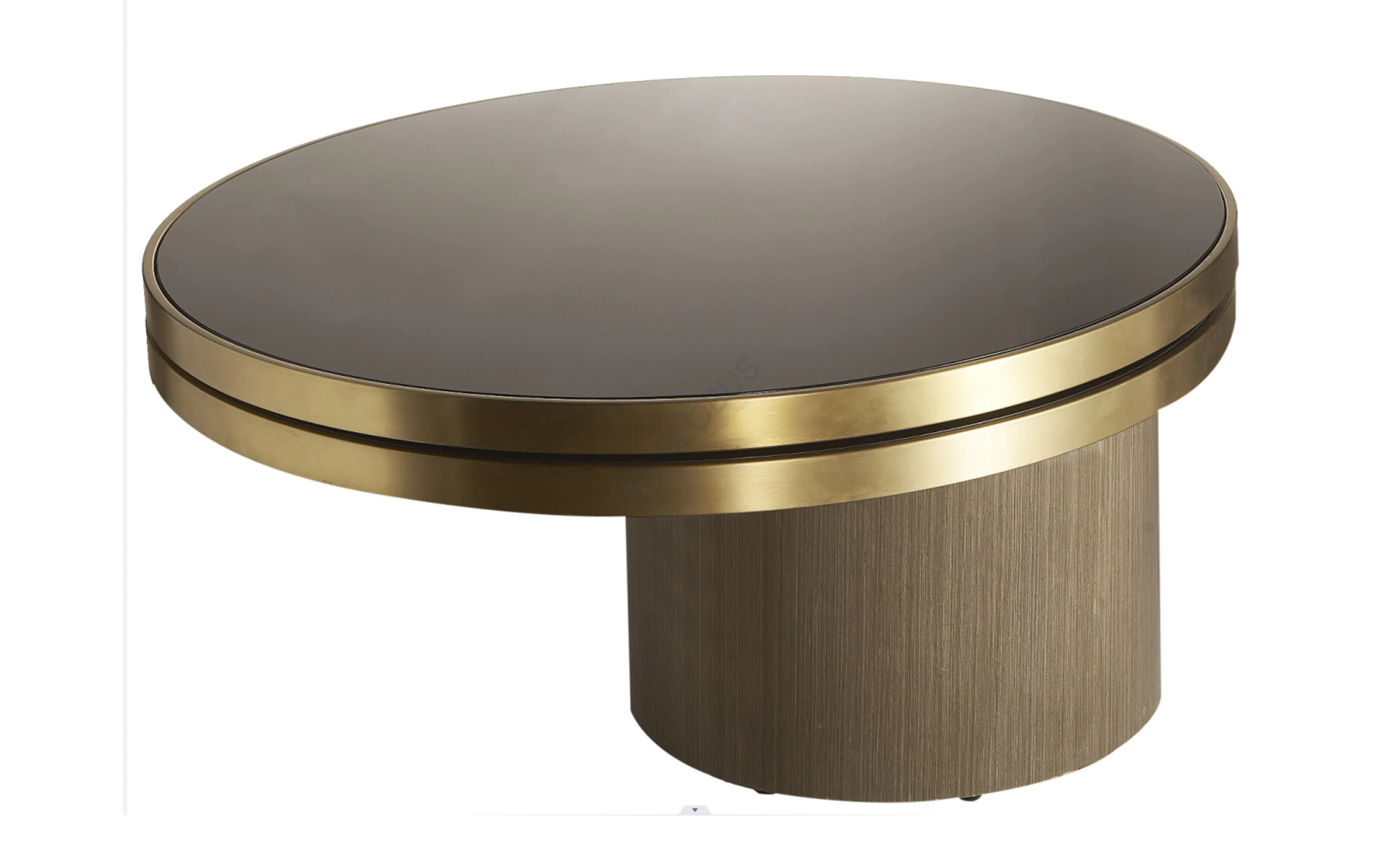 Основание предмета мебели выполнено из высококачественной нержавеющей стали, что придает ему прочность и благородный металлический оттенок. Эта монолитная конструкция служит надежным фундаментом для двух круглых столешниц из закаленного стекла. Гладкие глянцевые плоскости, обрамленные стальным кантом, деликатно отражают свет, добавляя помещению ощущение простора и воздушности.