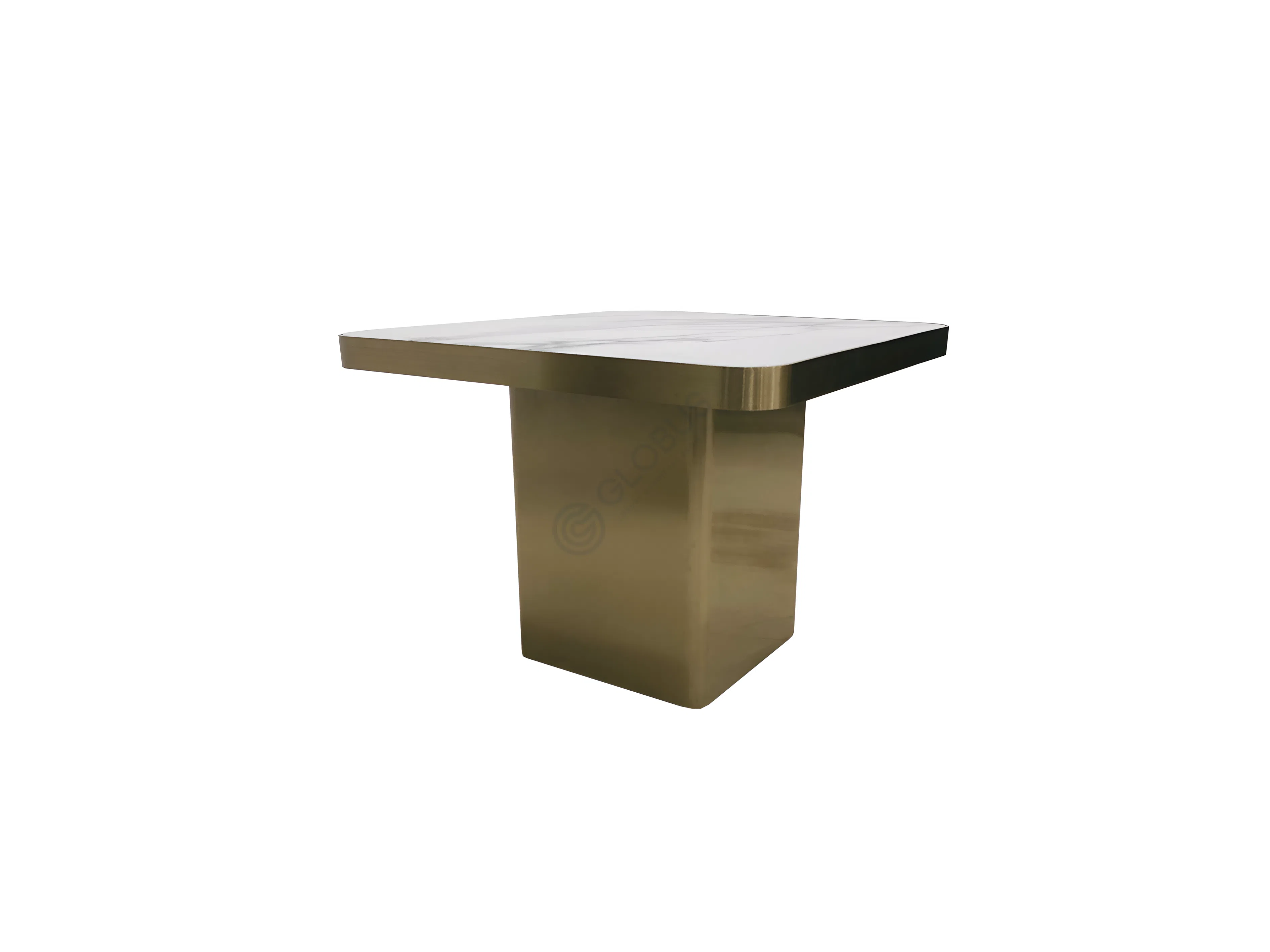 Верхняя панель изделия выполнена из натурального мрамора, чья глубокая палитра и уникальный рисунок прожилок, напоминающий легкую рябь, придают каждой модели эксклюзивность. Этот природный камень восхитительно сочетается с прочным основанием, а также с тонким обрамлением столешницы. Металлические элементы, выполненные из изысканной нержавеющей стали, отличаются безупречной шлифовкой и создают гармоничный баланс с природной текстурой мрамора.