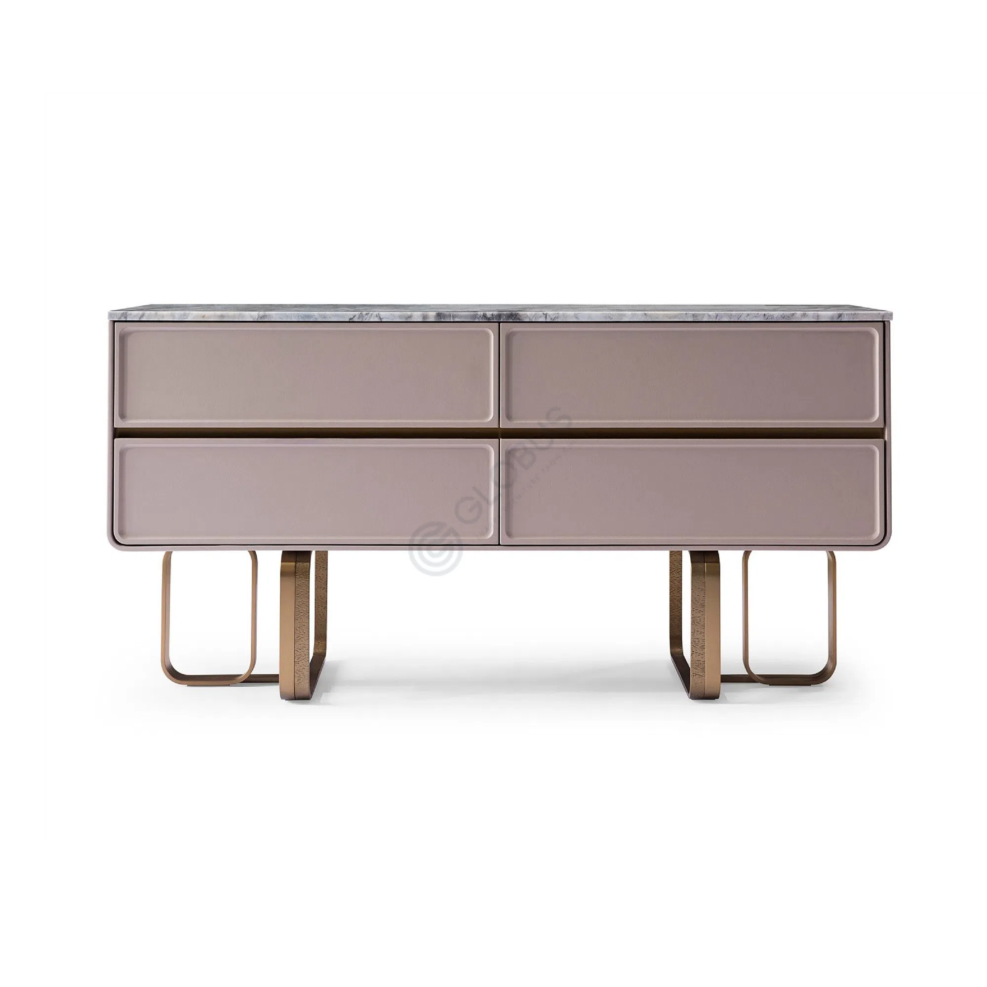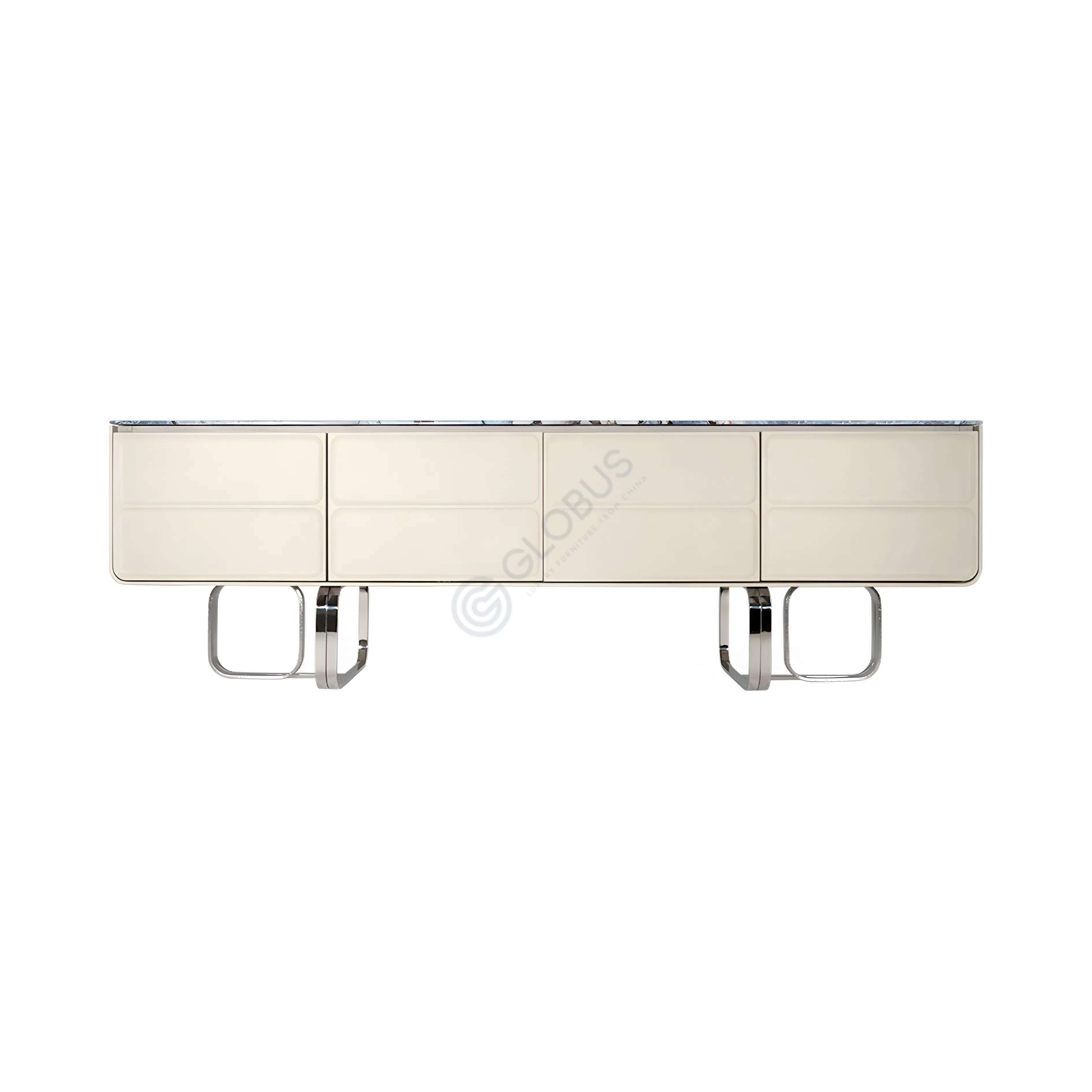 Завершает образ грациозное основание из полированной нержавеющей стали, выполненное в оттенке теплого золота. Его оригинальная, почти скульптурная форма не только обеспечивает надежную опору, но и выступает выразительным акцентом, придающим буфету легкость и актуальный стиль.