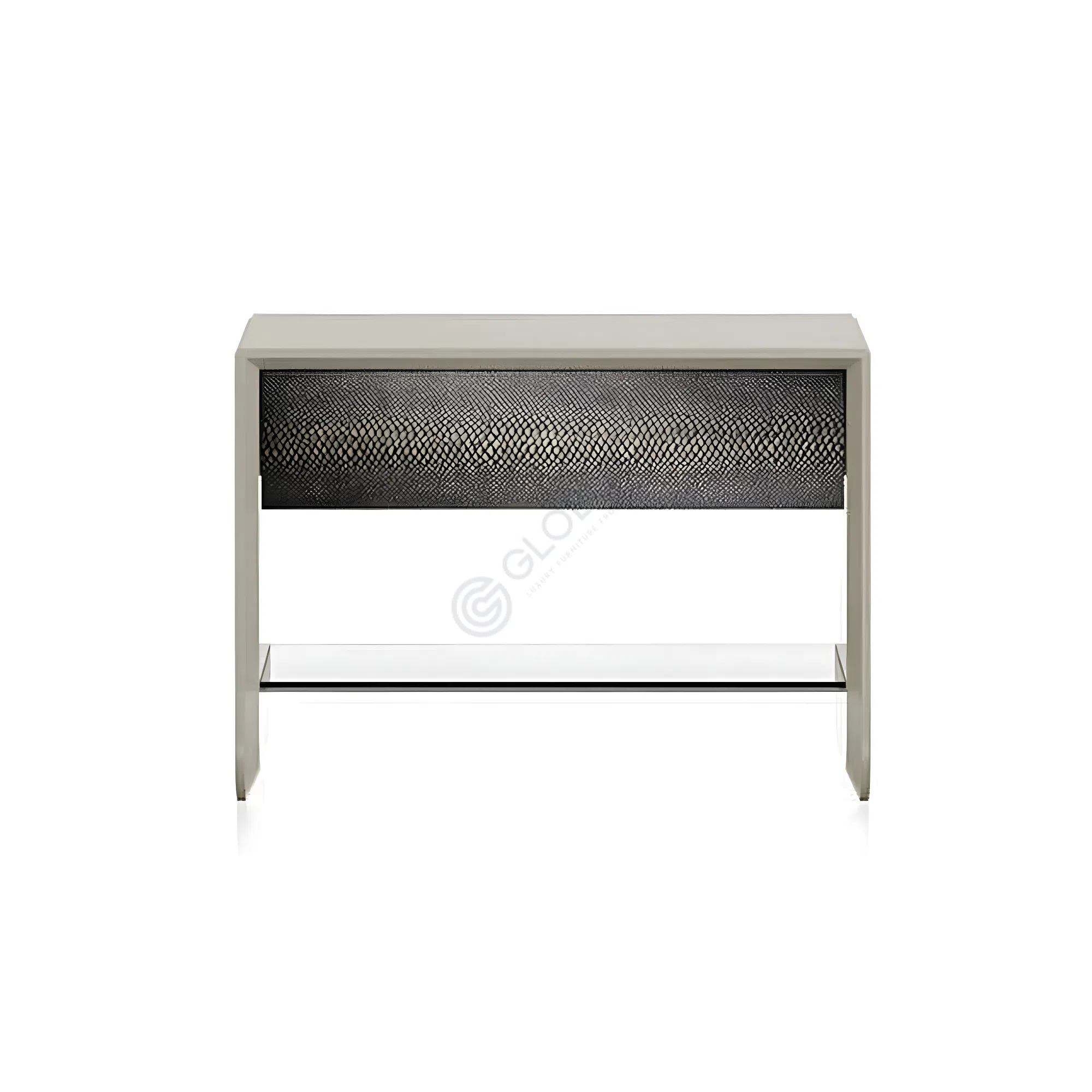 Представляем буфет, который с легкостью становится ключевым акцентом в любом современном интерьере. Его фасады обтянуты высококачественной экокожей на микрофибре, завораживающей своим уникальным, рельефным узором, напоминающим экзотическую кожу. Глубокий оттенок и тактильная поверхность придают этому изделию особую выразительность и глубину, подчеркивая его безупречный стиль.