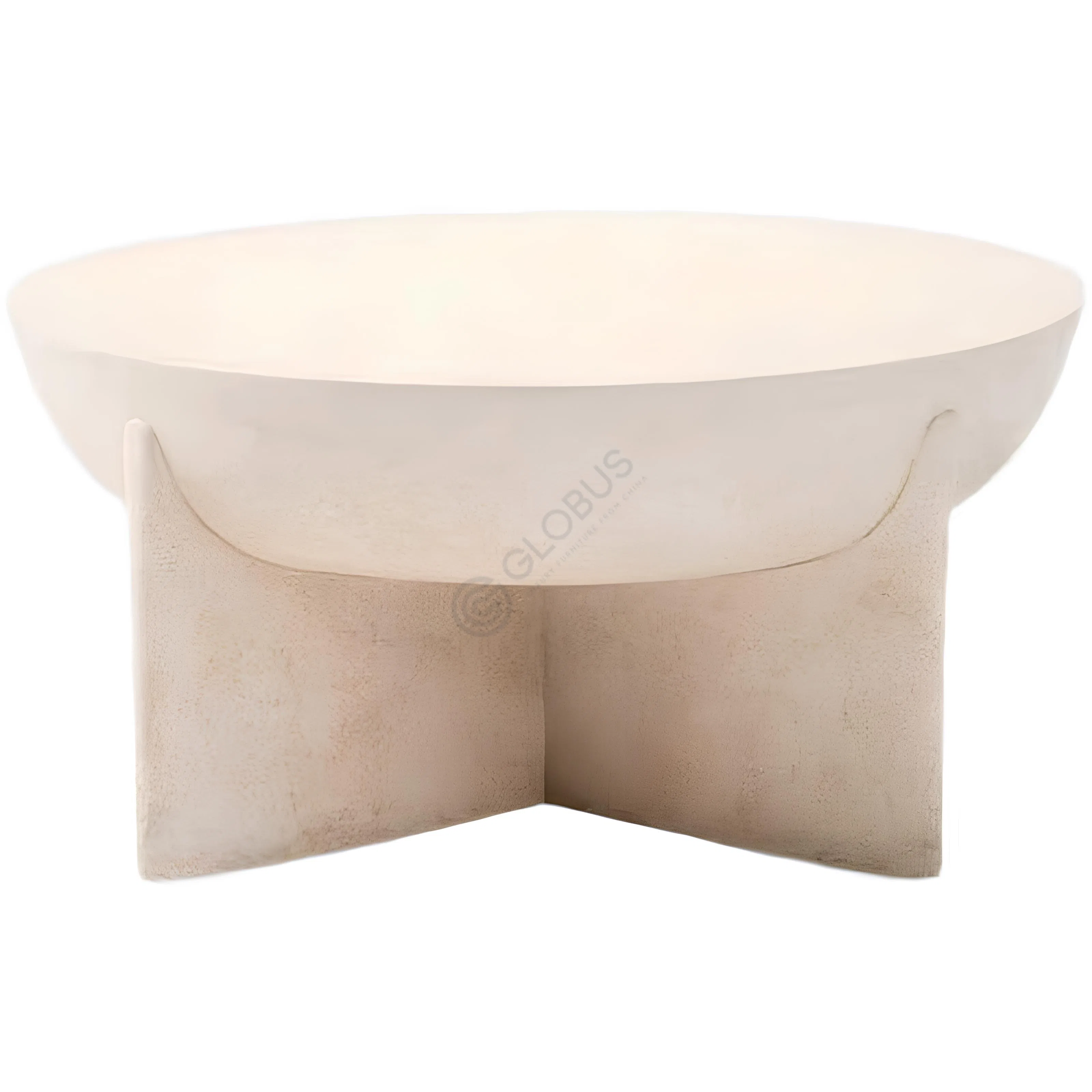 Материал, травертин, выбран не случайно; его пористая поверхность и уникальные прожилки рассказывают историю своего происхождения, делая каждое изделие поистине единственным в своем роде. Плавный переход от круглой столешницы к изогнутому основанию, состоящему из трех опор, создает интересную игру объемов и теней. Эта скульптурная структура одновременно крепкая и визуально легкая, что позволяет ей органично вписаться как в просторные, так и в более камерные уголки гостиной.