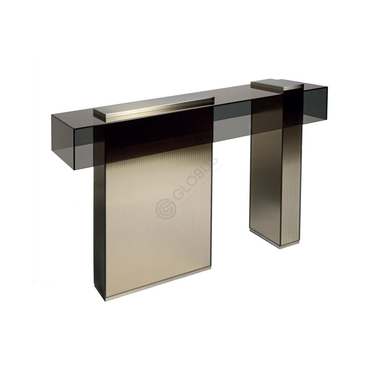 Этот обеденный стол — воплощение современного стиля, где каждый материал играет свою роль в создании гармоничного образа. Его столешница из закаленного стекла имеет благородный оттенок, придающий пространству легкость и изысканную глубину. Опоры стола представляют собой яркий контраст: одна выполнена из натурального мрамора, демонстрируя уникальный, неповторимый узор природного камня, а вторая — из фанеры, оформленной для создания цельного и прочного элемента. Искусно интегрированная нержавеющая сталь обеспечивает конструктивную надежность и долговечность всей композиции.