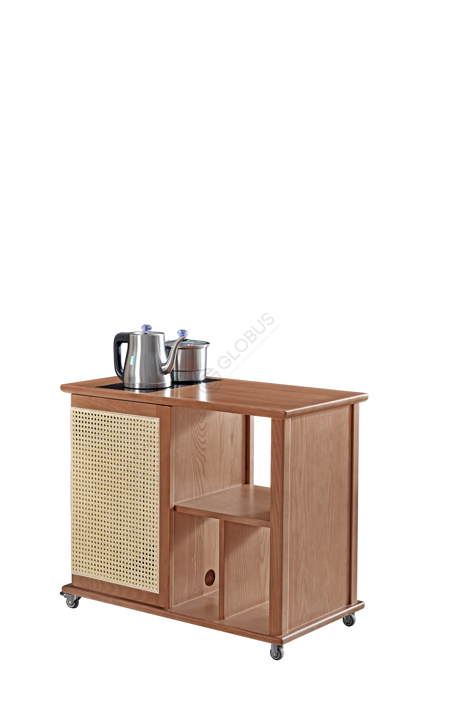 Функциональность изделия дополнена скрытыми маневренными колесами, которые обеспечивают легкое и бесшумное перемещение. Компактный предмет мебели одинаково уместен в гостиной, столовой или на кухне, выступая в роли мобильной станции для чайных церемоний или вспомогательной системы хранения. Такое решение объединяет в себе традиционный уют и современное представление о комфортном жилом пространстве.