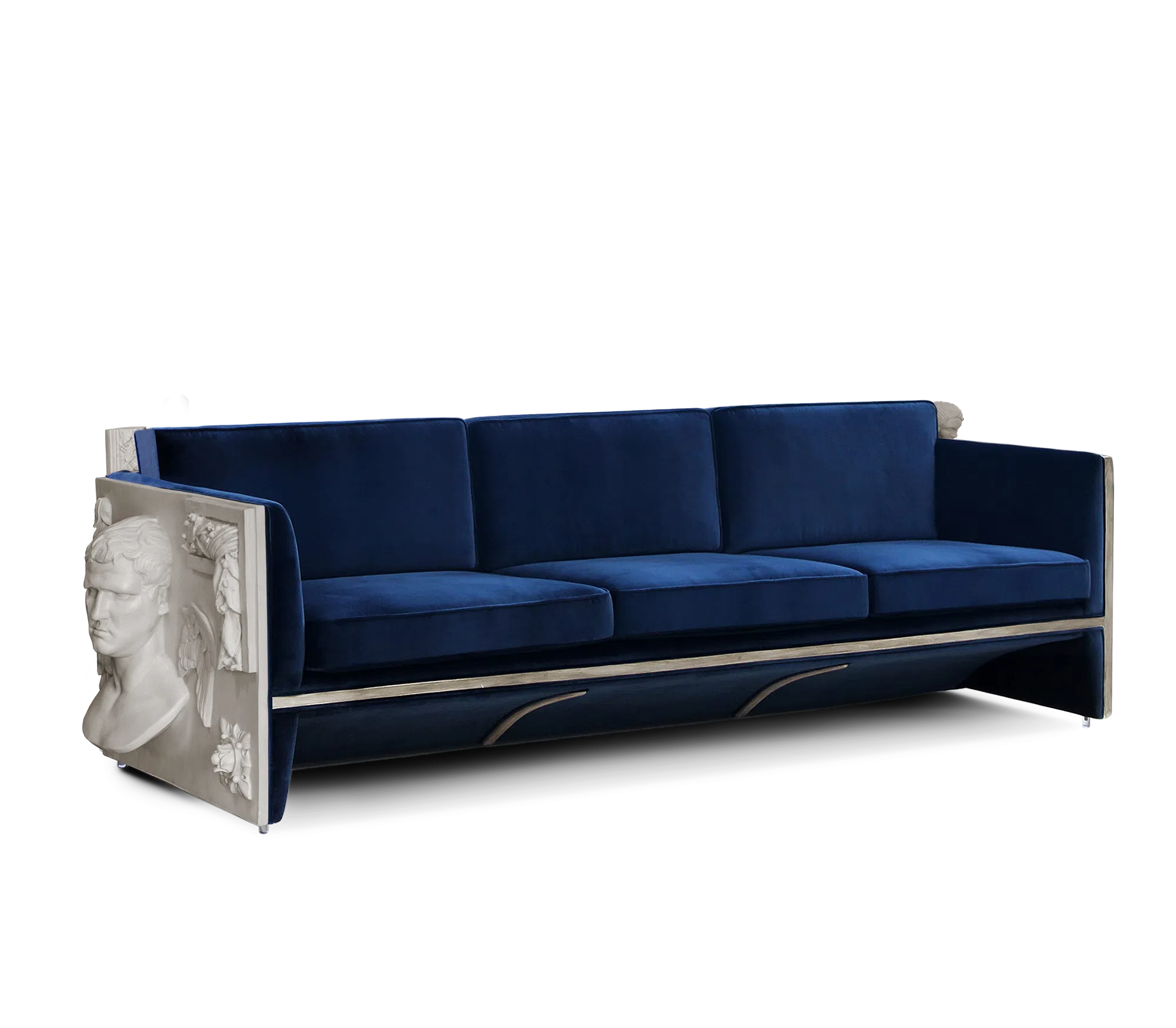 Это кресло представляет собой уникальное сочетание прикладного искусства и функциональности, вдохновленное эстетикой ар-деко. Массивное основание украшено сложными барельефами, напоминающими античные изваяния и классические архитектурные фрагменты. Объемный декор на боковых панелях придает предмету монументальный вид, превращая его в полноценный арт-объект.